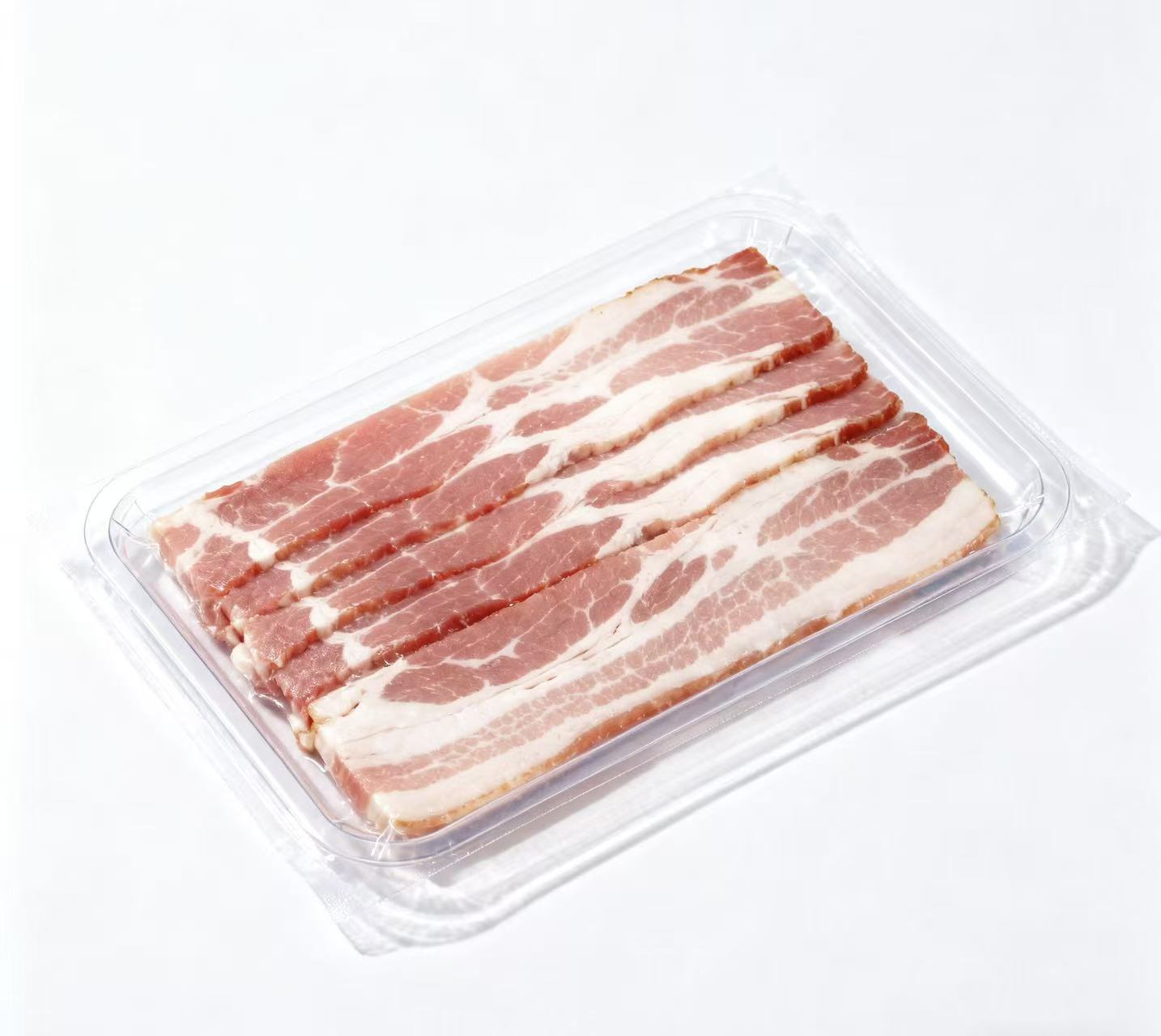 Our APET/PE Multilayer sheet and rollstock is a high-performance packaging material specifically designed for skin packaging and modified atmosphere packaging (MAP) applications. Engineered for compatibility with major thermoforming packaging machinery such as Multivac and Ulma, this plastic film offers exceptional clarity and reliability. It is the go-to solution for producers of bacon, fresh meat, and beef products who require a material that ensures both product appeal and preservation.